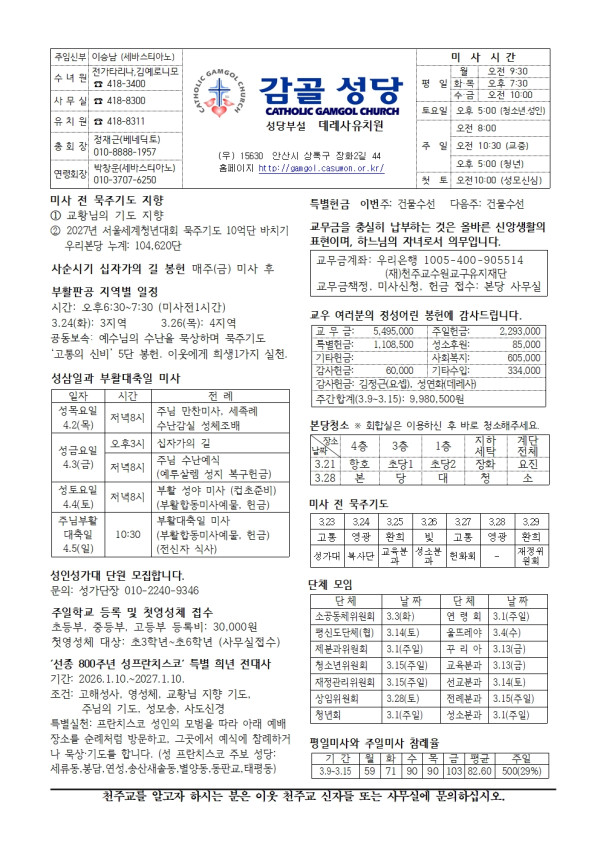 [주보] 사순제5주일 (2026. 3. 22) 페이지 정보 작성자 감골성당 작성일 26-03-21 10:47 본문 [주보] 사순제5주일 (2026. 3. 22) 목록 다음글[주보] 사순제4주일 (2026. 3. 15) 26.03.15
