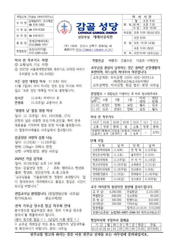 [주보] 연중제30주일 (2025.10.26) 페이지 정보 작성자 감골성당 작성일 25-10-25 17:07 본문 [주보] 연중제30주일 (2025.10.26) 목록 다음글[주보] 연중제29주일 (2025.10.19) 25.10.17