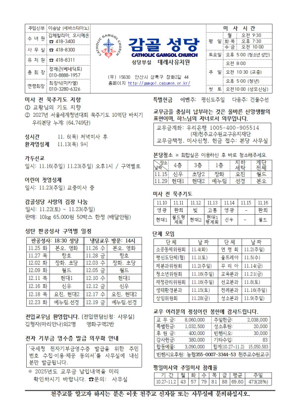 [주보] 연중제32주일 (2025.11. 9) 페이지 정보 작성자 감골성당 작성일 25-11-06 18:44 본문 [주보] 연중제32주일 (2025.11. 9) 목록 다음글[주보] 연중제31주일 (2025.11. 2) 25.11.06